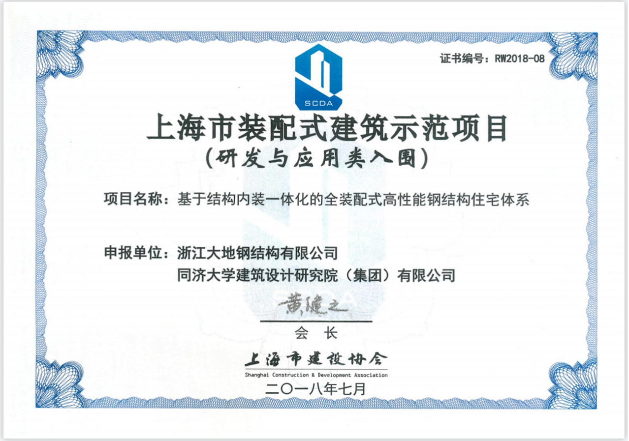 S-SYSTEM产品体系获得上海市装配式建筑示范项目(研发与应用类),专家组在示范项目评审意见中提出:S-SYSTEM产品体系是钢结构住宅领域的一个创新产品,具有先进性和推广价值。同年10月,入选北京住博会“中国明日之家”。