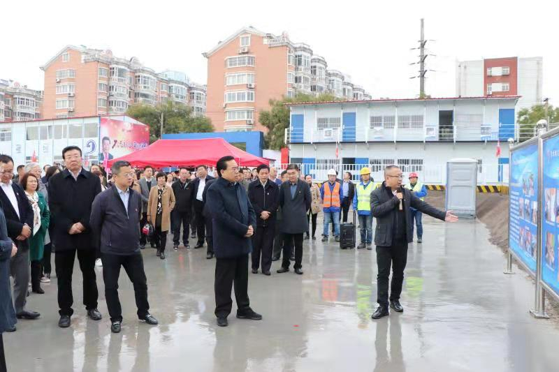 2018年11月11号,我们全体项目人员一早就来到了工地观摩现场,场区内红旗招展,人来人往,全体项目人员精神抖擞,全力以赴,会场一派热情洋溢、斗志昂扬热烈气氛,做好了一切迎接观摩团准备。市区领导很重视我们这个项目,第一站就来到我们工地展区。在我们多彩的展牌边,光洁的场地上,区委书记王希静发表了重要的讲话,肯定了我大地公司在前期拆迁和施工中知难而进的精神,以及对教育事业做出的努力和贡献给予表彰,博得大家阵阵热烈掌声。