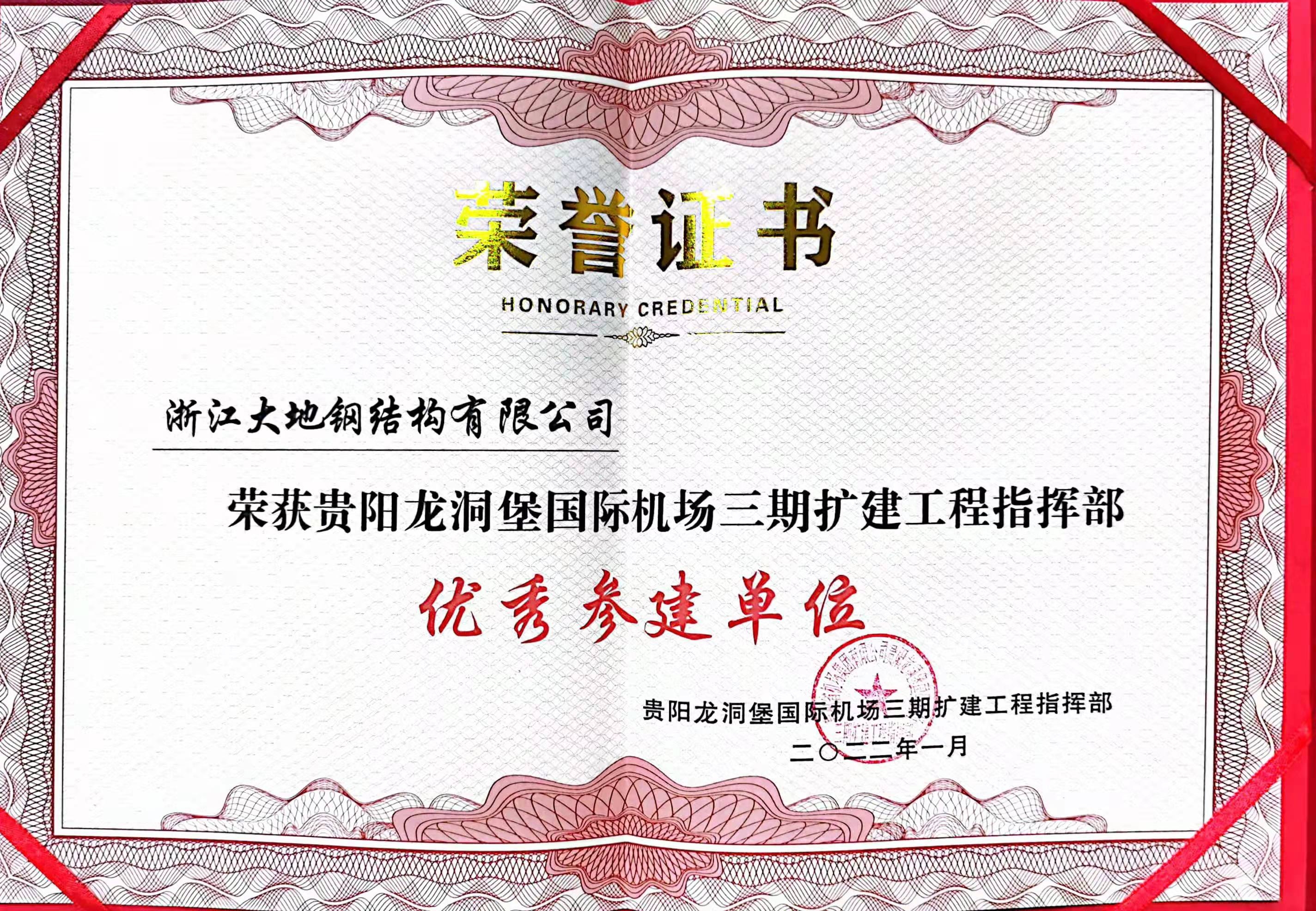 大地钢构荣获贵阳机场三期扩建工程“优秀参建单位”称号