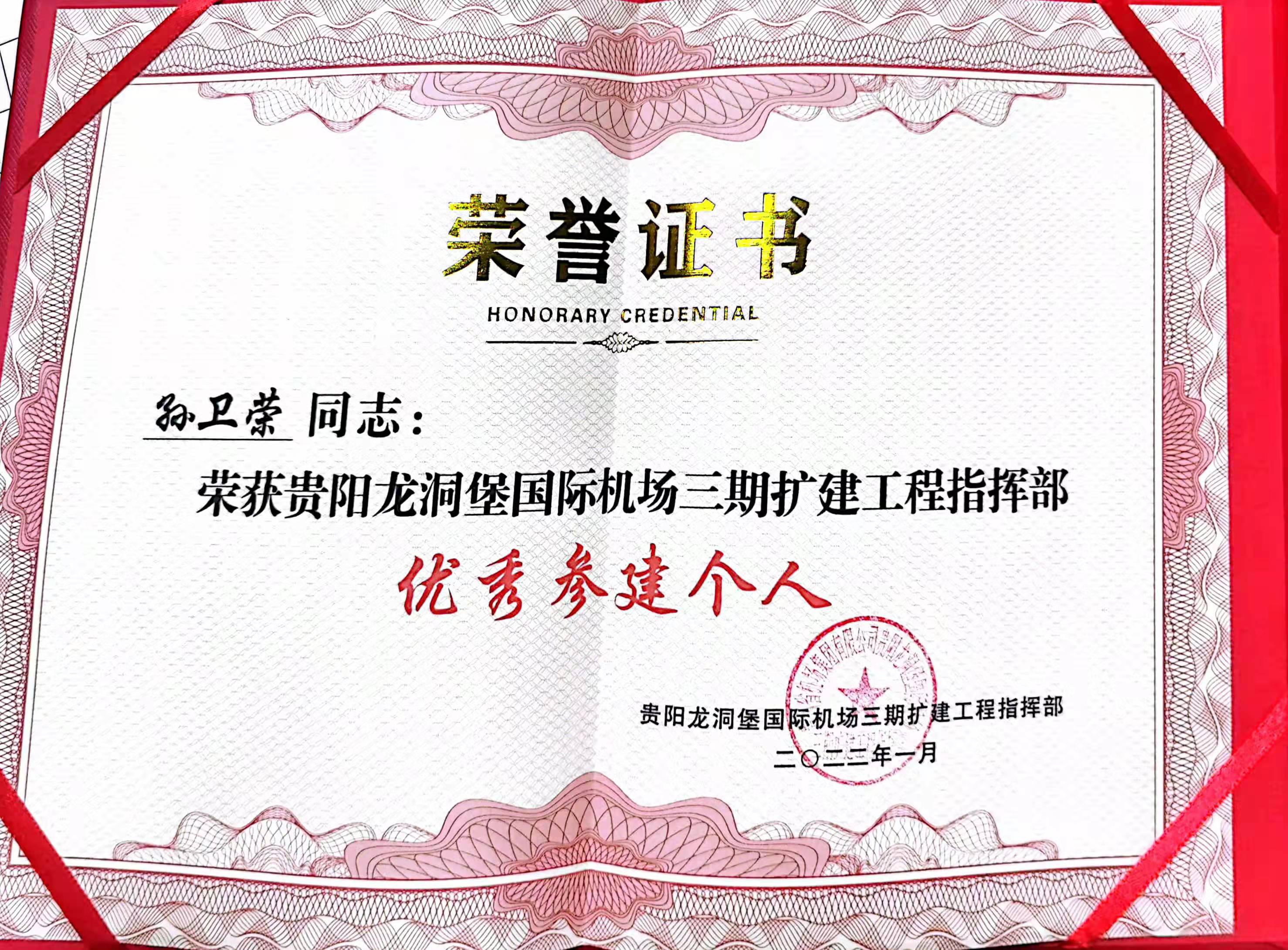 近期,贵阳龙洞堡国际机场三期扩建工程指挥部对工程建设优秀参建单位和个人进行表彰。大地钢构荣获“优秀参建单位”称号,我司孙卫荣获评“优秀参建个人”称号。