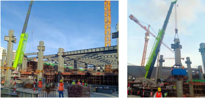 目前,项目右裙房地下室负一二层的构件及楼层板安装已全部完成,左裙房地下室正在施工中,下一阶段主要围绕左右裙房地上1-4层主体结构展开施工。