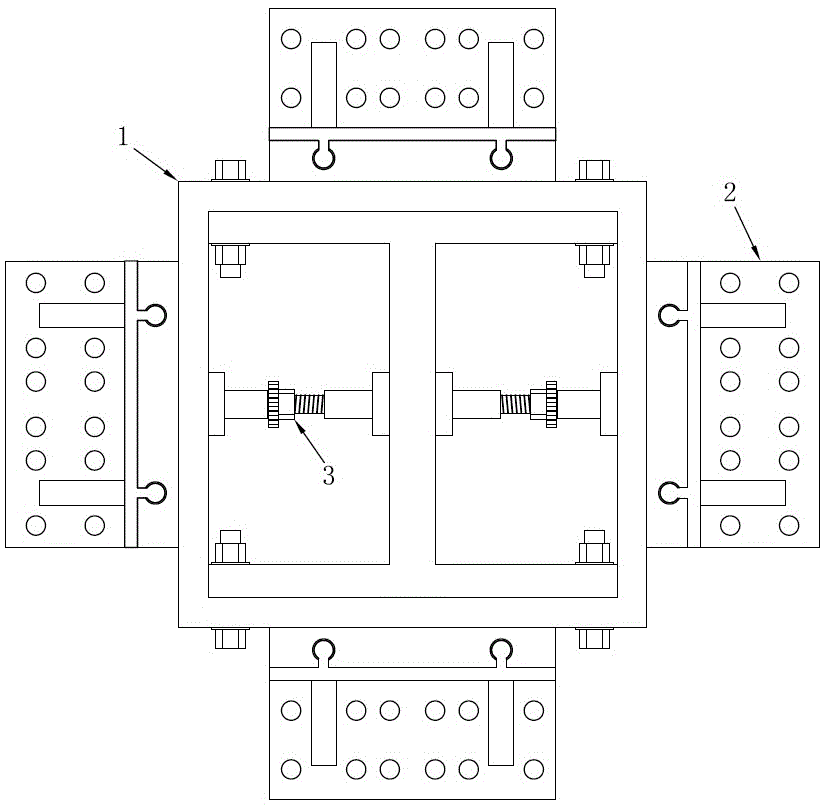 针对装配式H型钢梁连接节点的复杂工艺,我们进行了技术研究。该施工技术不需要进行滑动插接,可以有效节省钢梁的安装空间。根据横向H型钢梁的尺寸大小,可以通过调整调节装置,使得其可上下滑动调节,这样能对多种尺寸的H型钢梁进行固定。本技术不需多次进行打孔作业,安装便捷。