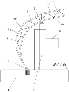为解决大型场馆挑出式的钢桁架顶棚载荷大的问题,需要缓冲结构将钢桁架顶棚的受力向外侧传递和缓冲,为此我们研究了一种装配式钢桁架缓冲滞回型支撑结构施工技术。此技术通过研发装置下端的拉杆牵引和顶端的缓冲器支撑,可以对平面桁架的上下抖动和横向摆动均形成缓冲滞回,消弭应力,减少对钢结构的损伤。