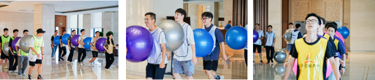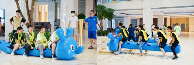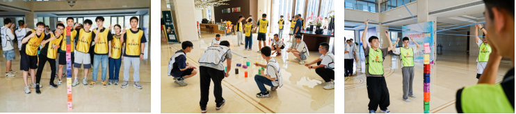 “无敌碰碰球”游戏在对抗中增加团队凝聚力和向心力,“合力建塔”游戏在协作中分工互补、统一行动,之后进行的“砥砺前行”,则需要每个队员在脚上绑上绑带,朝着共同的方向前进,在沟通中培养信任与默契。不知不觉中,现场的氛围温馨且融洽。