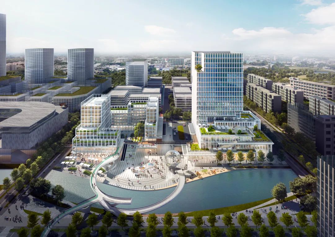 项目新建两栋建筑:1号楼主要功能为商务办公,2号楼主要功能为租赁公寓,结合预见未来山水城市主题,打造宜居宜业的多元化复合社区。