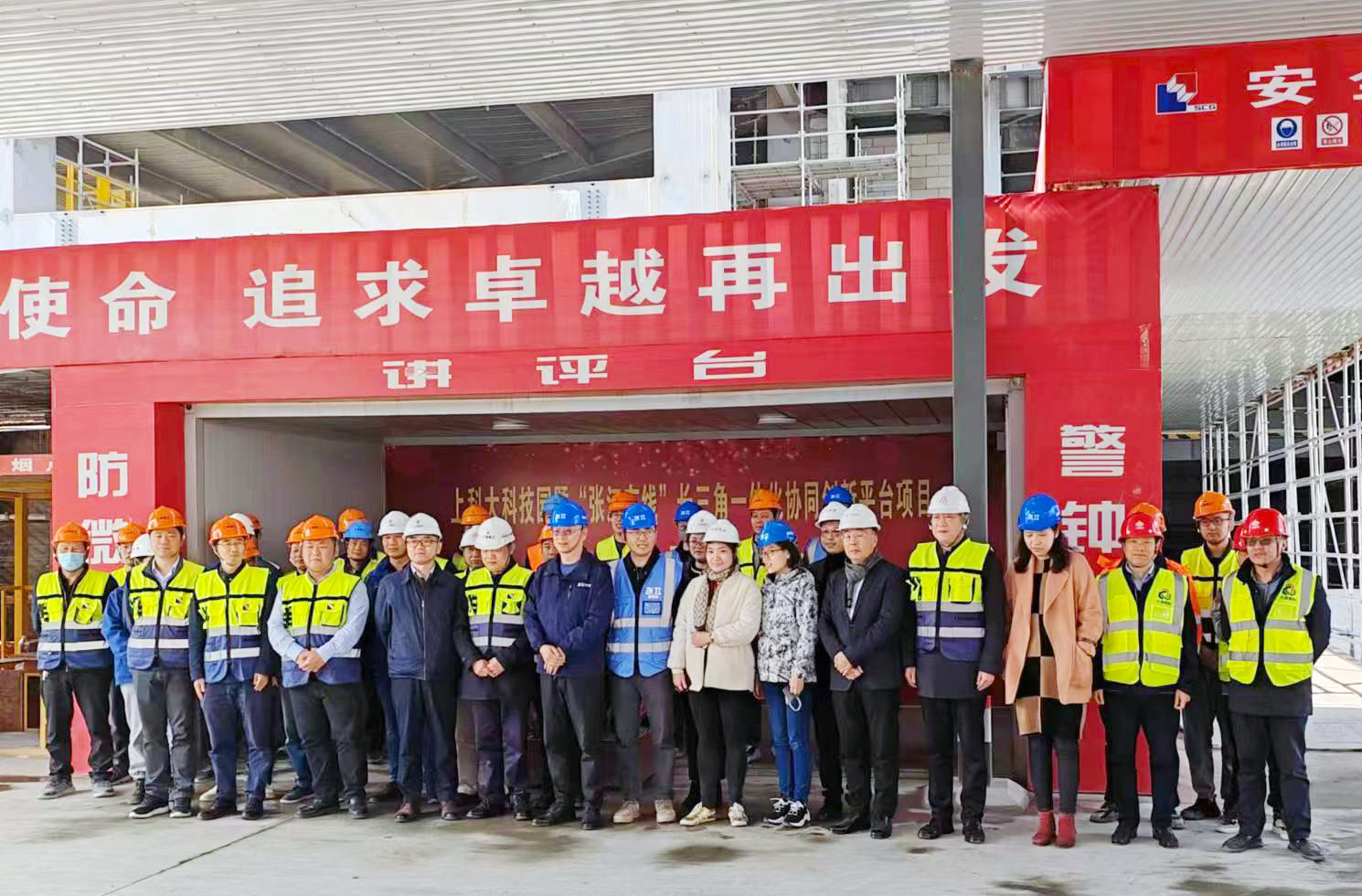 3月27日下午,上科大科技园暨“张江在线”长三角一体化协同创新平台项目封顶仪式顺利举行,标志着项目建设取得了重大阶段性进展,为顺利竣工奠定了坚实基础。