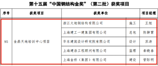 金鼎天地培训中心项目荣获“中国钢结构金奖”