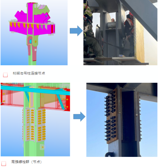 工程结构复杂、技术难度高、施工难度大,钢结构外框为悬挂结构,钢柱节点全部采用高强螺栓节点,桁架与吊柱连接采用销轴节点,加工和安装精度要求极高,也是国内采用倒挂式体系设计中规模较大的民用建筑。