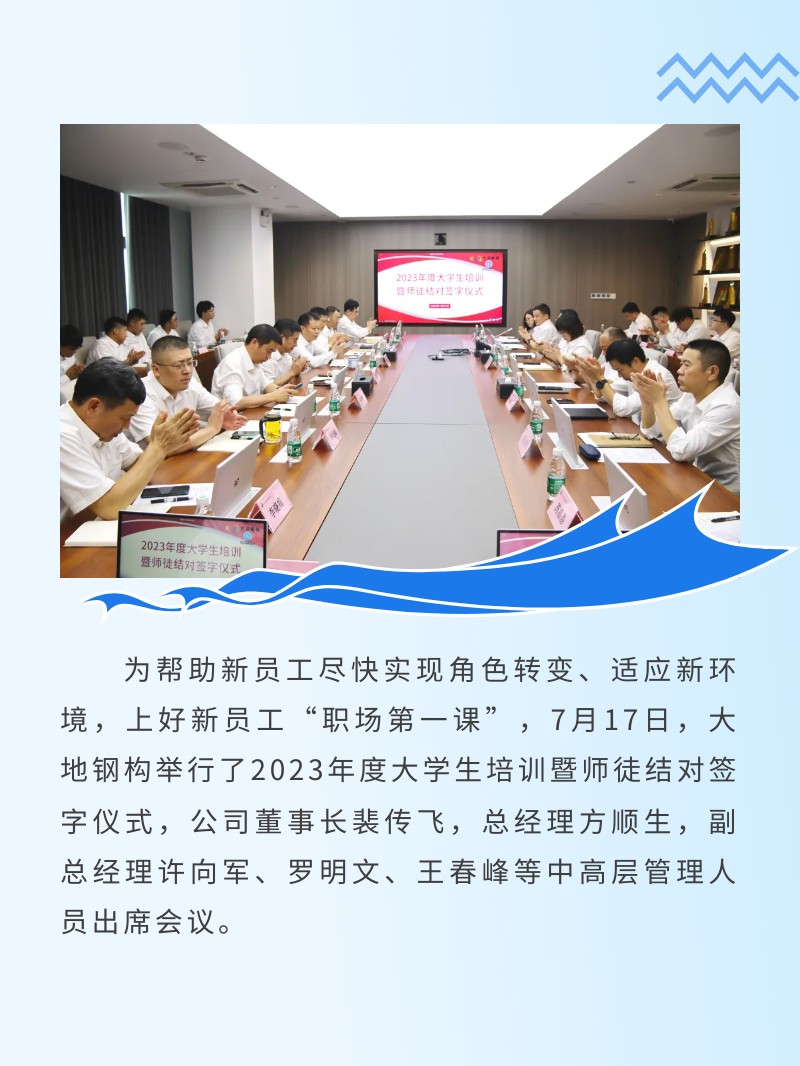 凝“新”聚力|大地钢构2023年度大学生培训暨师徒结对签字仪式圆满结束