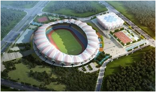 由我公司承建的龙山县体育中心项目钢结构工程。项目位于龙山县华塘街道华塘社区、华新社区和繁荣村交界之处,该项目被列为湖南省湘西自治州重点工程和省民生实事项目,是龙山县2016年“十百千”工程中的“一百个重点项目”之一。