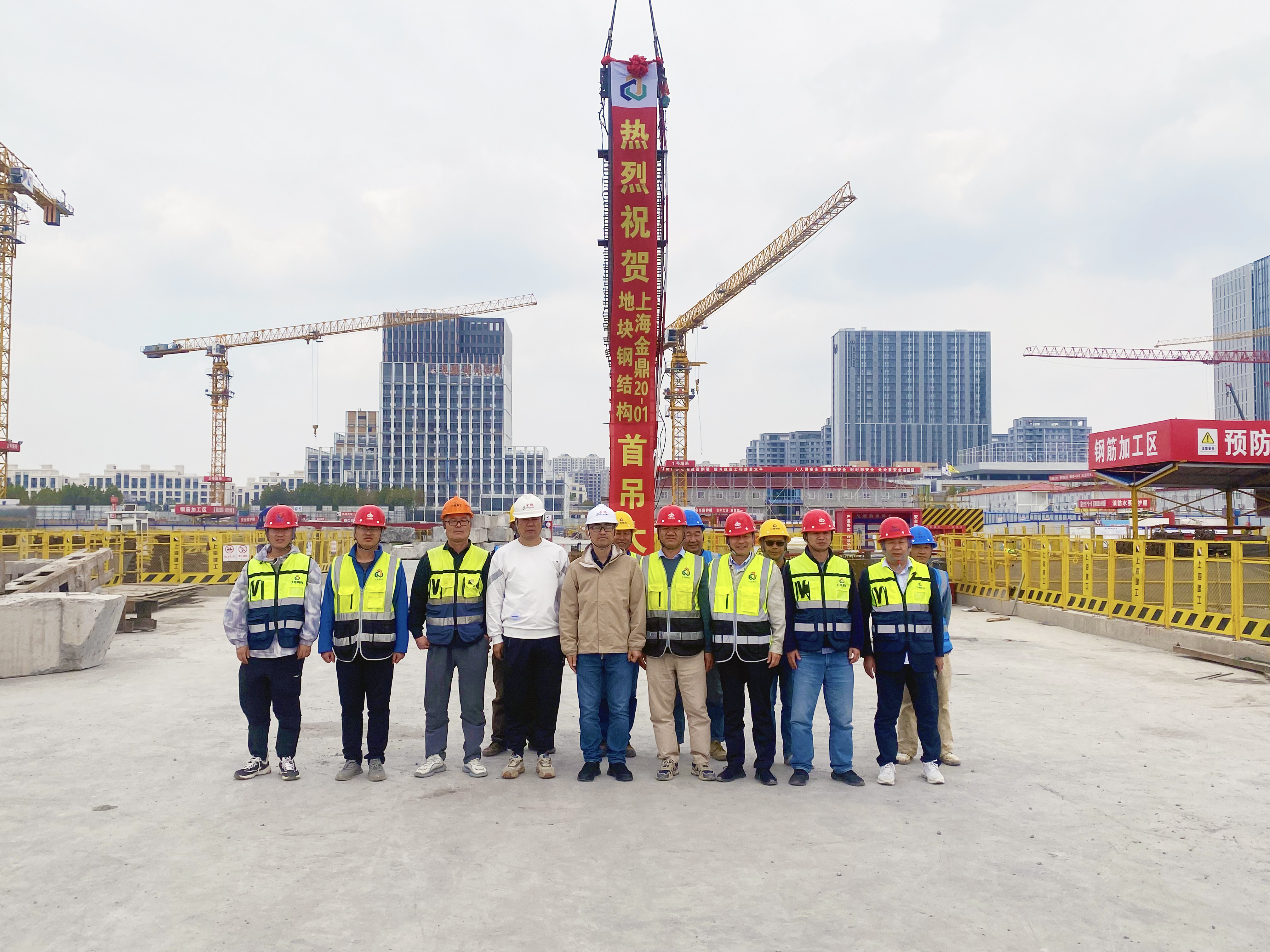11月6日上午11:28,上海金鼎20-01地块办公和商业新建项目钢结构顺利首吊。