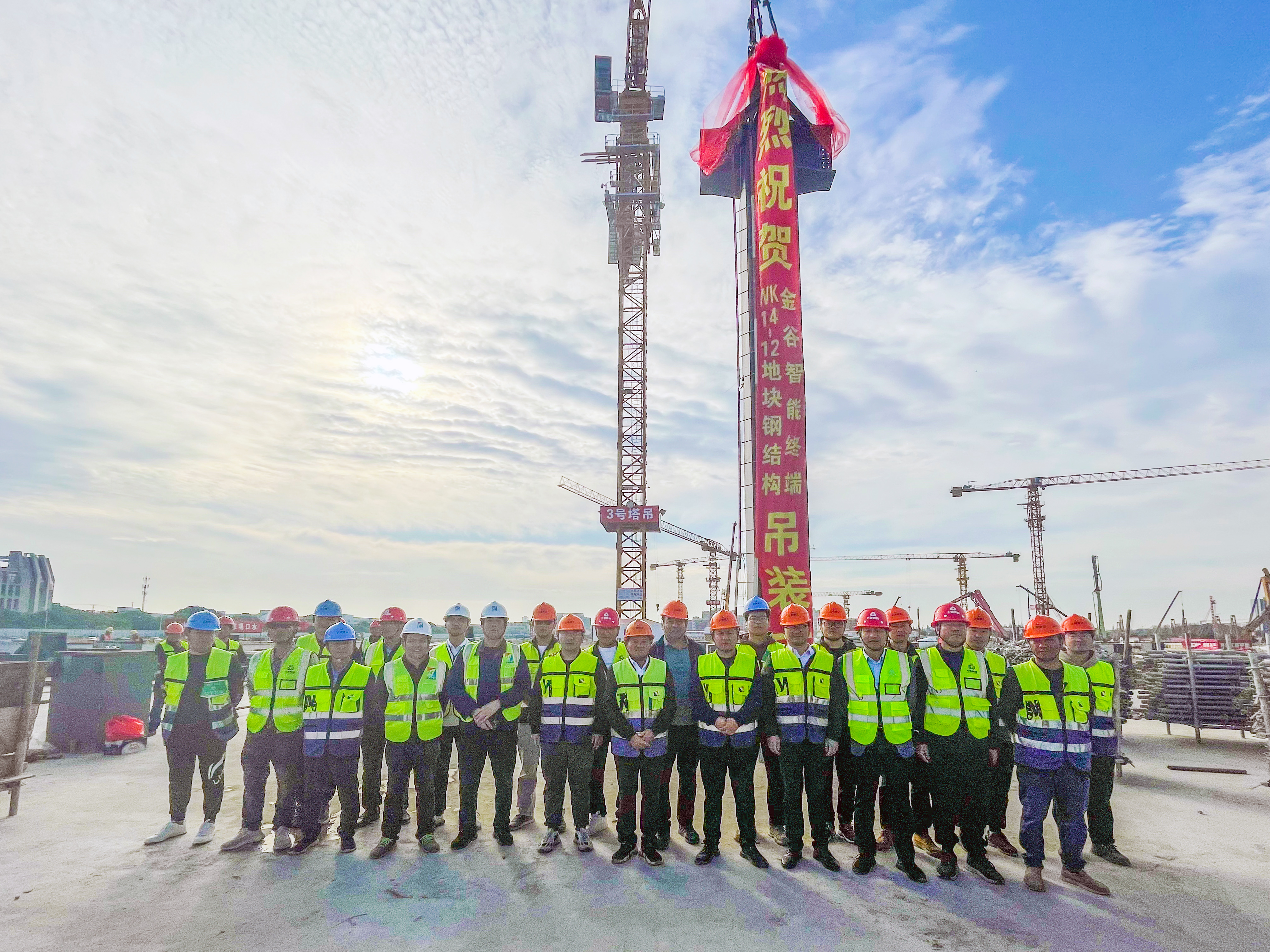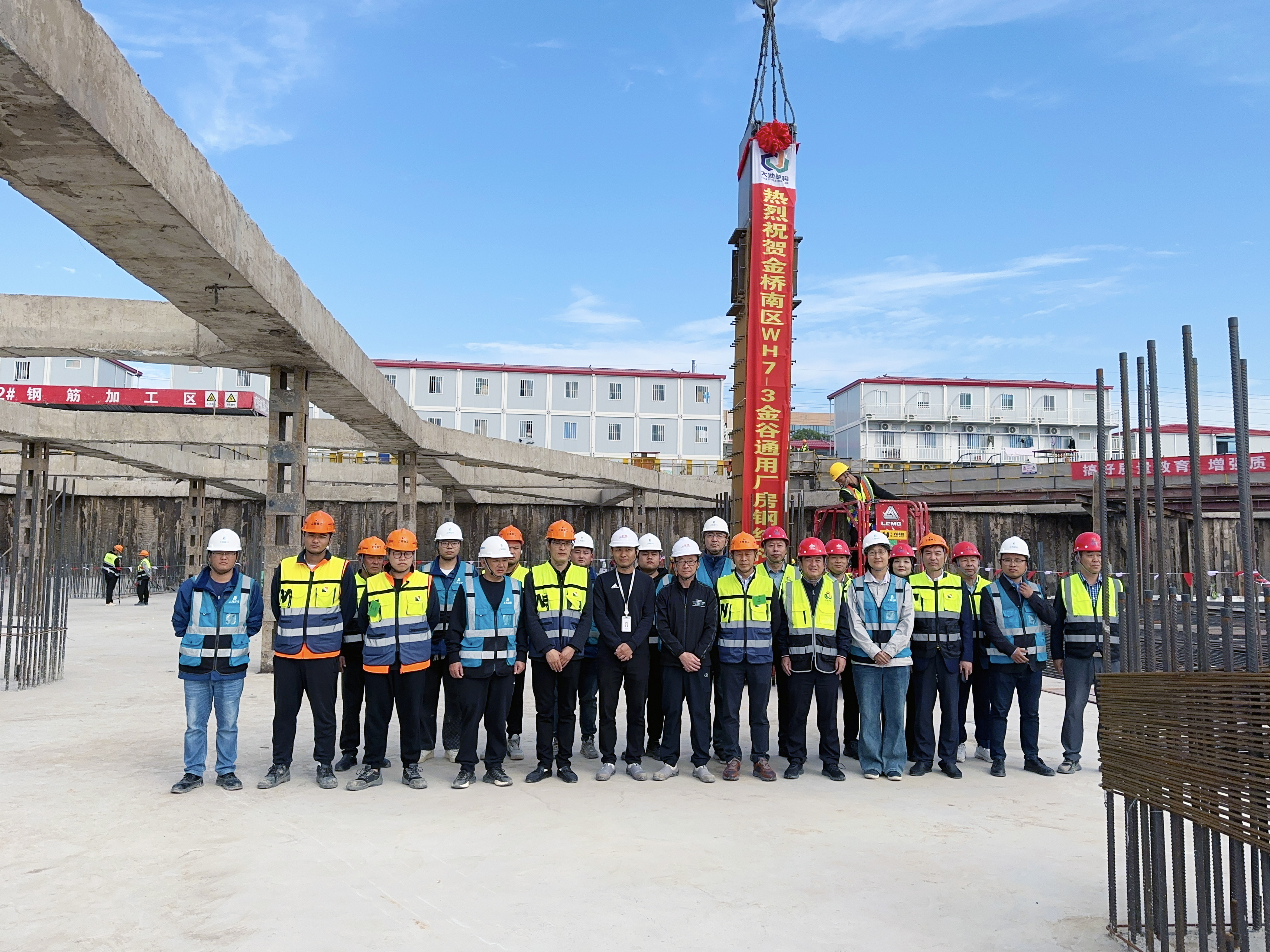 11月8日上午8:18,上海金谷智能终端制造基地WK14-12地块项目地上钢结构首吊顺利完成,项目建设正式步入钢结构施工阶段。