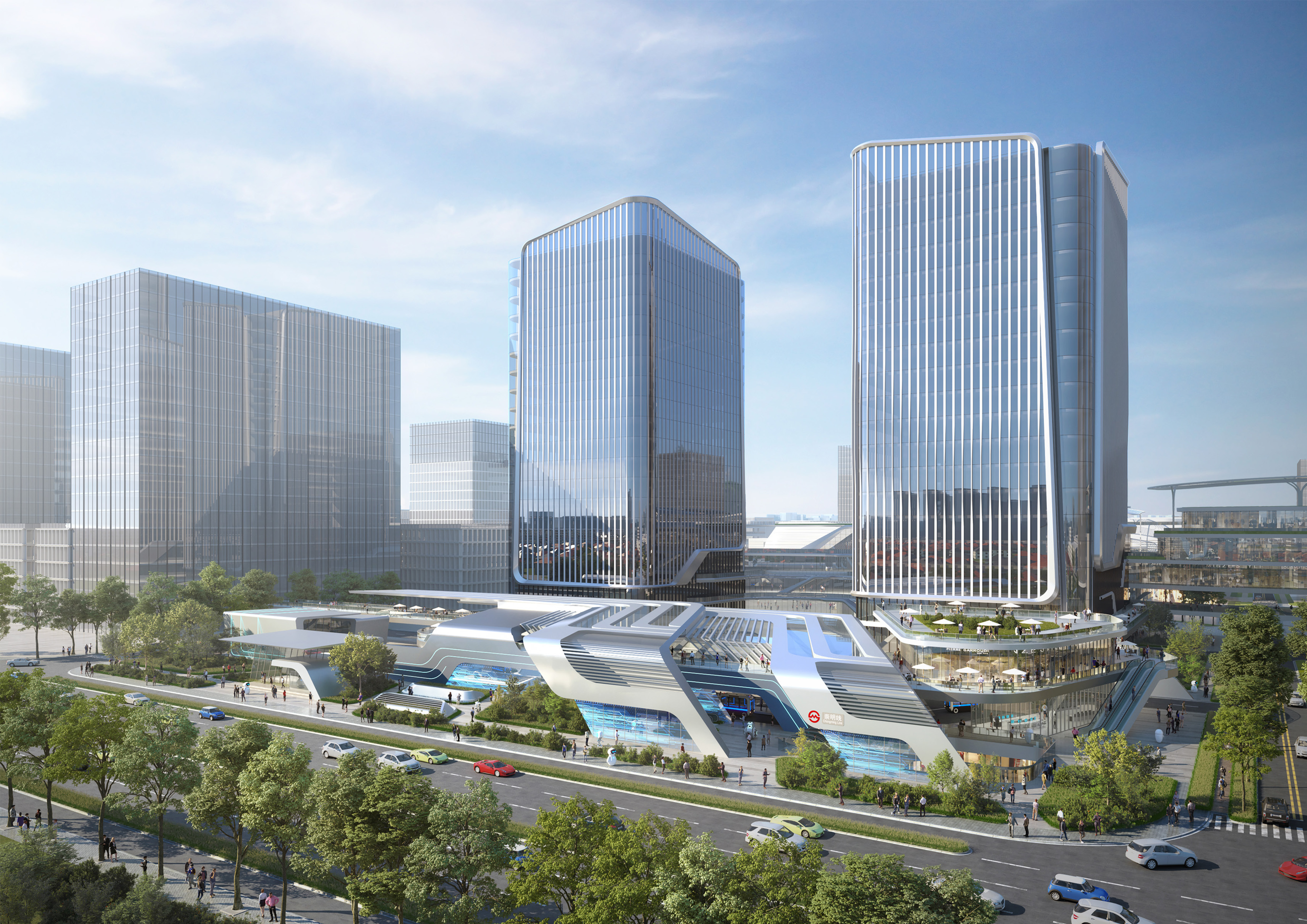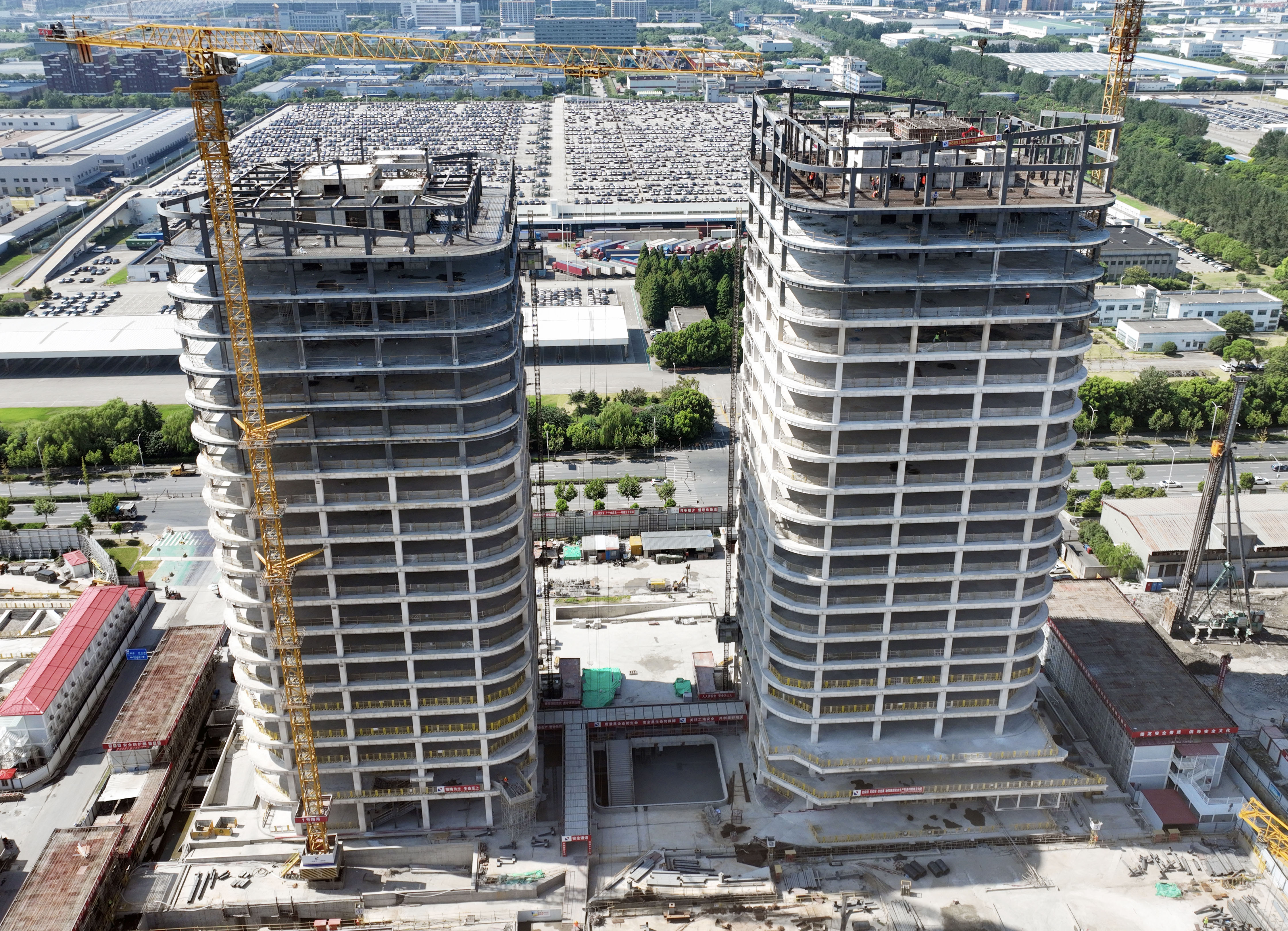 项目位于上海浦东新区金桥开发区内,总建筑面积16.5万㎡,其中地上建筑面积8.8万㎡,地下建筑面积7.7万㎡。南侧为两栋18-19层的办公塔楼,建筑高度分别为84.1米、88.6米,结构体系钢框架-钢筋混凝土核心筒结构;北侧为地上四层商业裙房,与相邻的16-01地块、17-02地块、19-01地块等三个地块地下室相连,建成后将成为特大型商业及办公综合体。
