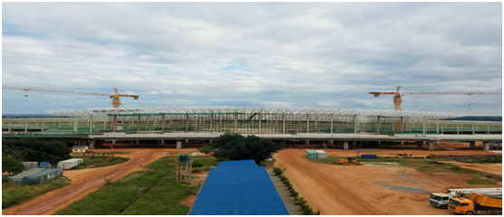 赞比亚卢萨卡•卡翁达国际机场航站楼网架主体工程顺利结顶