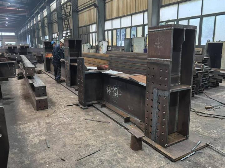 该项目为玻璃原料配料系统与设备配套钢结构,其加工制作与验收均采用欧洲标准,且具有加工周期短、构件主材截面小且节点区域多、外观要求高、需要预拼装、大部分节点要求熔透、单根构件多段不等厚的腹板及翼板拼接、焊接变形控制要求高等特点。