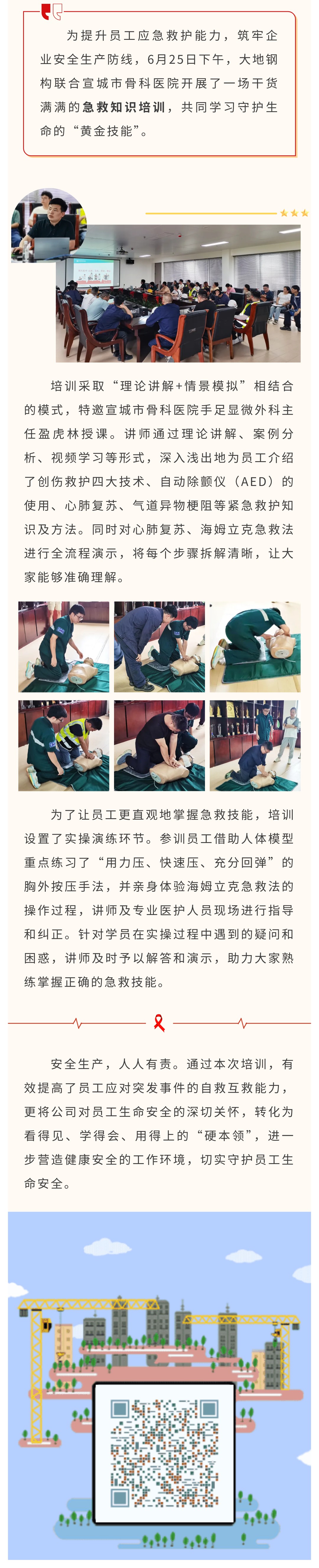 守护生命 “救”在身边 | 大地钢构开展现场急救处置方法培训