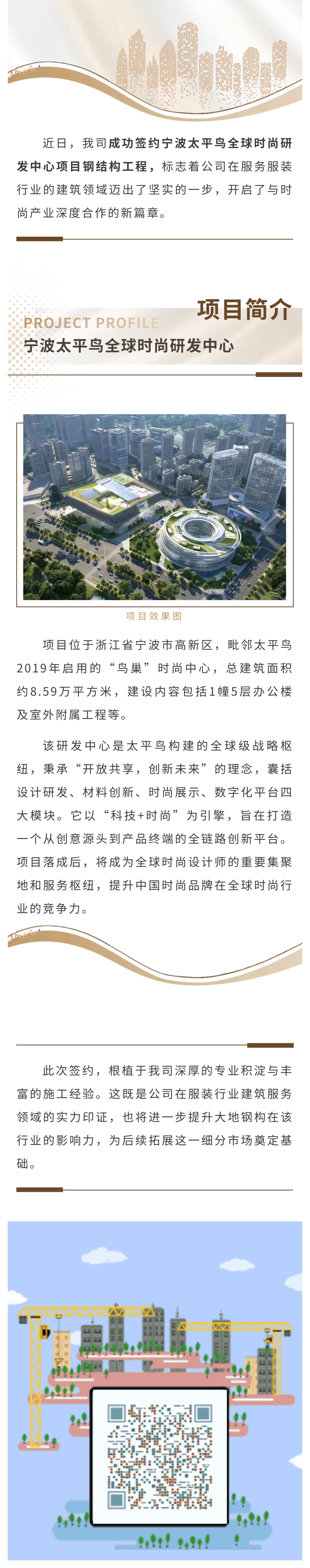铸就时尚之翼!我司成功签约宁波太平鸟全球时尚研发中心项目