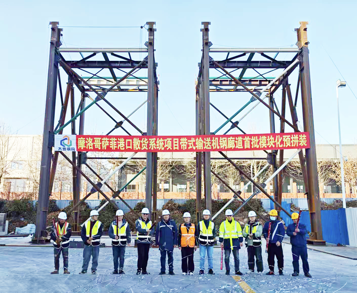 摩洛哥萨菲港口散货系统项目带式输送机钢廊道完成首批模块化预拼装