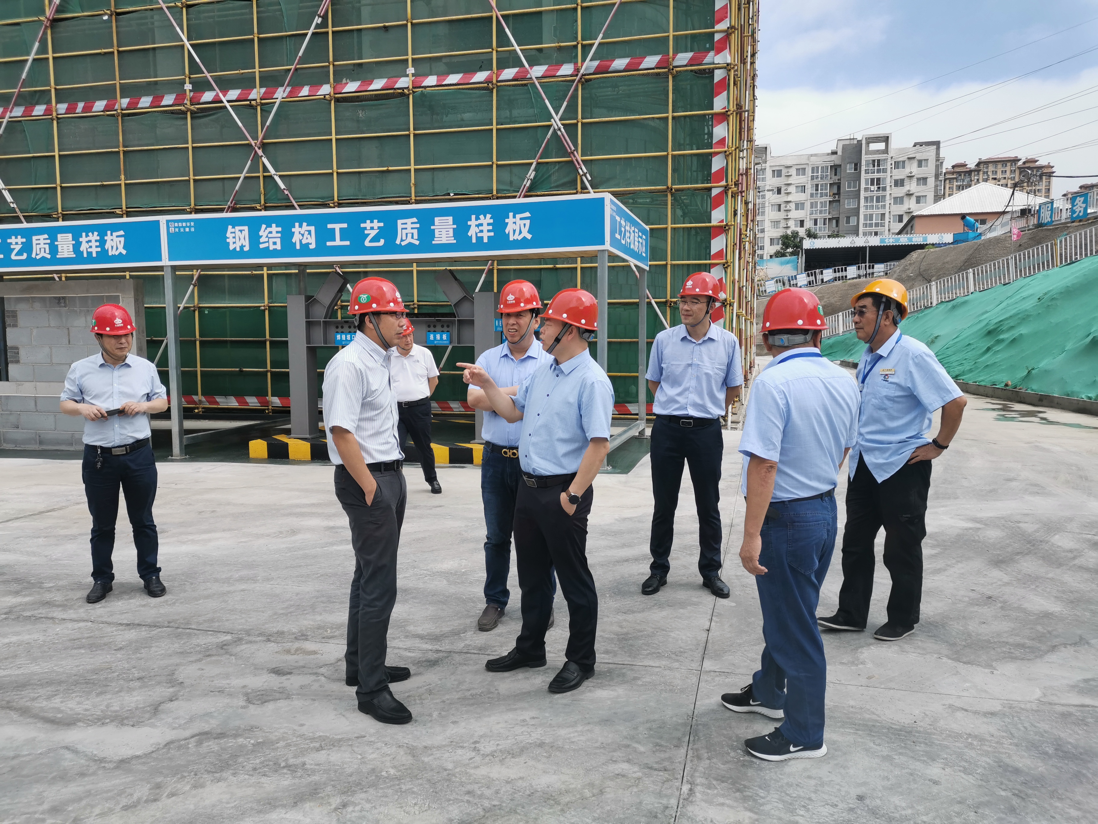 2020年7月31日上午,龙元集团副总裁罗永福、大地钢构董事长周敬德和总经理裴传飞莅临青岛君峰路中学项目检查指导工作,听完项目部工作汇报后与项目部管理人员互动交流,罗总、周董对项目部管理给予肯定并做出要求,对项目的成本管理提出建设性意见。