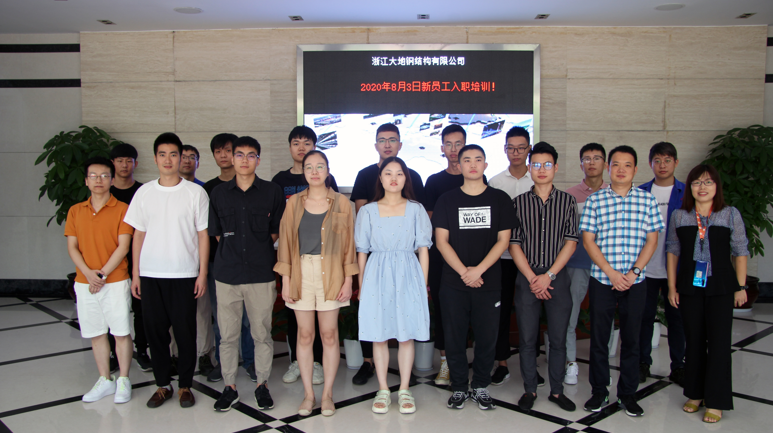 8月3日,我司开展了为期一天的2020届新员工入职教育培训。来自全国各地的19名新员工加入到大地钢构大家庭,一支年轻的生力军将为公司注入新鲜血液。