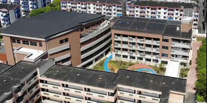 奉贤区四团小学综合楼新建工程项目位于上海市奉贤区四团镇,新建综合楼建筑面积 9348.9㎡,建筑高度21.9m,建筑结构为钢框架结构,校园融学园、花园、乐园为一园,集自然美、人文美、艺术美为一体。拥有一幢“回”字形教学楼和一幢三层的综合楼,标准化操场、篮球场、乒乓室、图书室等一应俱全,工程主体采用钢结构,工程采用装配式建造设计及施工方式。