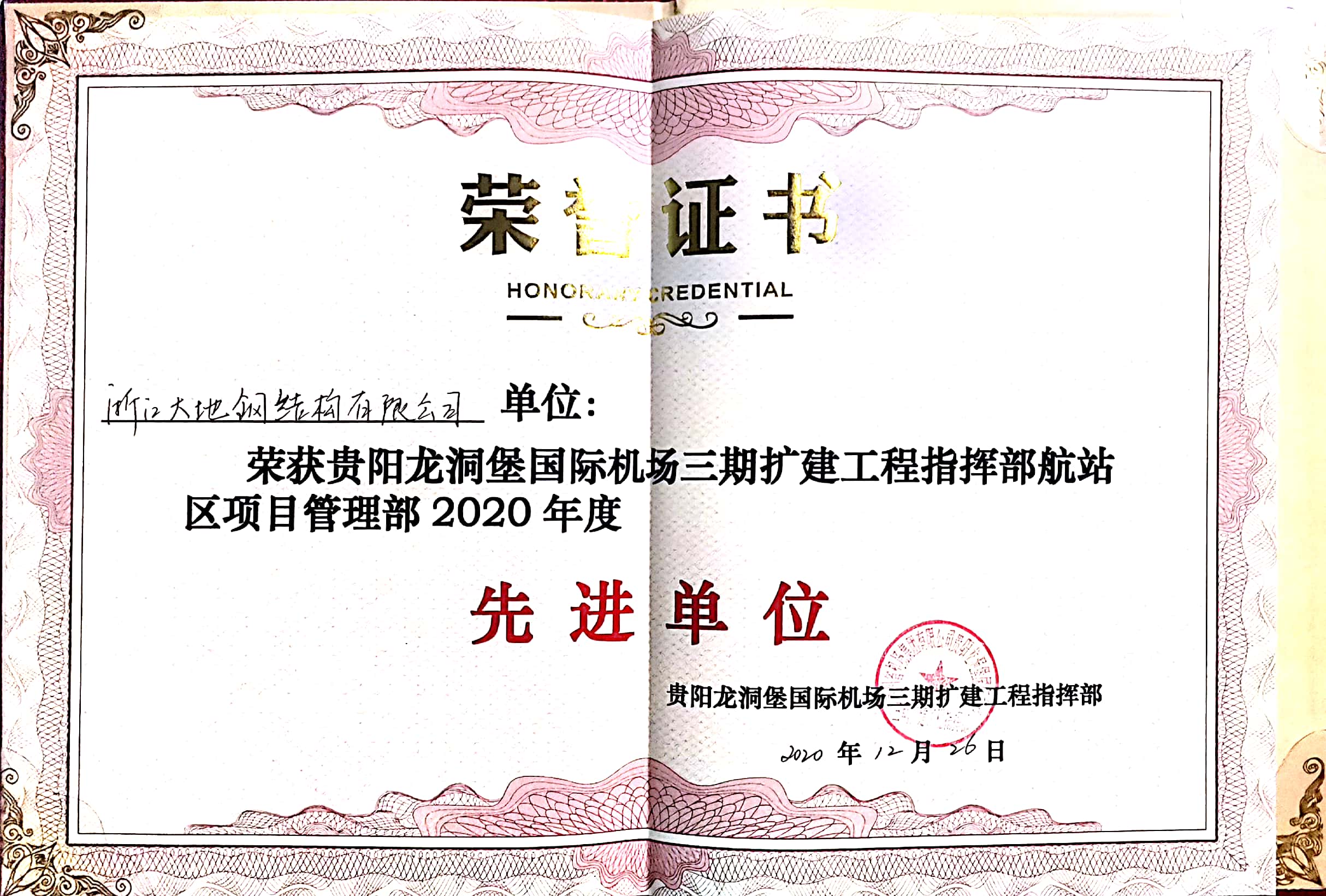 大地钢构荣获贵阳机场项目管理部2020年度先进单位