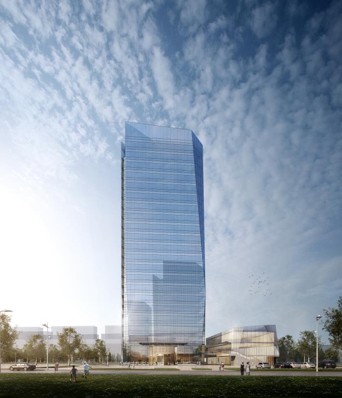 中山街道国际生态商务区7-3地块办公楼项目位于上海市松江区,建筑面积56075.1㎡,总占地面积9162.1㎡,单体建筑包含塔楼和裙房。其中塔楼地下三层,地上二十二层,结构高度93.4m;裙房地下三层,地上三层,结构高度13.9m。