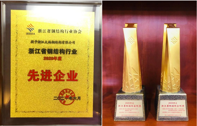 大会上,大地钢构被评为2020年度浙江省钢结构行业“先进企业”,由我司承建的“晋江国际会展中心项目钢结构工程”和“格力电器(南京)中央空调项目第Ⅲ标段钢结构工程”两大项目荣获2020年度“中国钢结构金奖”推荐奖(“浙江省钢结构金刚奖”)。