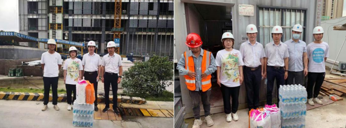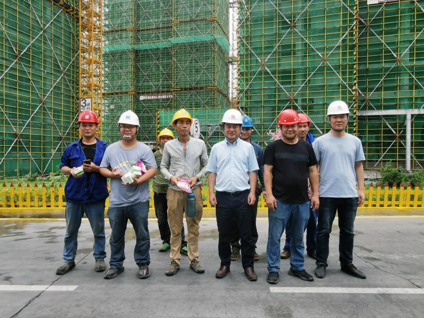 在杭州富阳大华智能制造基地、杭州信达广场项目现场,总工莫观水一行人为一线人员送上了“清凉礼包”,感谢他们的辛勤付出和敬业精神,同时反复叮嘱项目部做好防暑降温以及防疫工作,抓生产更要保安全。