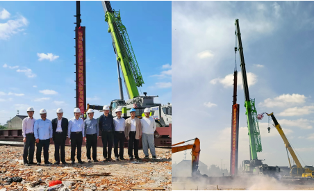 10月12日11:18,江苏正原工程装备有限公司1#厂房重型钢构项目举行了首吊仪式,在业主方、监理方及公司领导的共同见证下,在项目团队全体人员的共同努力下,首根钢柱缓缓吊起、平稳准确就位,意味着项目正式进入钢构主体施工阶段。